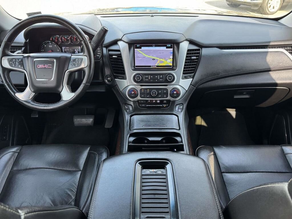 Recent Arrival! APPLY FOR FINANCING ONLINE, ONLINE APPRAISALS AVAILABLE, 17" Disc/Disc VAC Power Brakes, 20" x 9" Polished Aluminum Wheels, 3.08 Rear Axle Ratio, 3rd row seats: split-bench, 4-Wheel Disc Brakes, 5 Auxiliary 12-volt Power Outlets, 9 Speakers, ABS brakes, Adjustable pedals, Air Conditioning, All-Weather Floor Mats, Alloy wheels, AM/FM radio: SiriusXM, Apple CarPlay/Android Auto, Auto High-beam Headlights, Auto-dimming door mirrors, Auto-dimming Rear-View mirror, Automatic temperature control, Black Assist Steps w/Chrome Strip, Bose Premium 9-Speaker System, Brake assist, Bumpers: body-color, CD Player, CD player, Compass, Delay-off headlights, Driver door bin, Driver vanity mirror, Dual front impact airbags, Dual front side impact airbags, Electronic Stability Control, Emergency communication system: OnStar Guidance, Enhanced Driver Alert Package, Exterior Parking Camera Rear, Forward Collision Alert Sensor Indicator, Front anti-roll bar, Front Bucket Seats, Front Center Armrest, Front dual zone A/C, Front fog lights, Front reading lights, Front wheel independent suspension, Full-Feature Reclining Bucket Seats, Fully automatic headlights, Garage door transmitter, Hands Free Power Liftgate, Heated & Ventilated Driver & Front Passenger Seats, Heated door mirrors, Heated front seats, Heated Leather-Wrapped Steering Wheel, Heated rear seats, Heated steering wheel, Illuminated entry, Inside Rear-View Auto-Dimming Mirror, Intellibeam Automatic High Beam On/Off Headlamps, Lane Keep Assist, License Plate Front Mounting Package, Low Speed Forward Automatic Braking, Low tire pressure warning, Memory Package, Memory seat, NavTraffic, Occupant sensing airbag, OnStar Basic Plan For 5 Years, OnStar w/4G LTE, Open Road Package, Outside temperature display, Overhead airbag, Overhead console, Panic alarm, Passenger door bin, Passenger vanity mirror, Passive Entry System, Pedal memory, Perforated Leather-Appointed Seat Trim, Power door mirrors, Power driver seat, Power Liftgate, Power passenger seat, Power Release 2nd Row 60/40 Split-Folding Bench Seat, Power Release Second Row Bucket Seats, Power steering, Power Tilt & Telescopic Steering Column, Power Tilt-Sliding Sunroof w/Express-Open/Close, Power windows, Power-Adjustable Pedals For Accelerator & Brake, Preferred Equipment Group 4SA, Premium audio system: IntelliLink, Premium Smooth Ride Suspension Package, Push Button Keyless Start, Radio: AM/FM/SiriusXM, Radio: AM/FM/SiriusXM w/Navigation, Rain sensing wipers, Rear air conditioning, Rear anti-roll bar, Rear Cross-Traffic Alert, Rear reading lights, Rear Seat Blu-Ray/DVD Entertainment System, Rear seat center armrest, Rear window defroster, Rear window wiper, Remote Keyless Entry, Remote keyless entry, Roof rack: rails only, Security system, Side Blind Zone Alert w/Lane Change Alert, SiriusXM Satellite Radio, Speed control, Speed-sensing steering, Split folding rear seat, Spoiler, Steering wheel memory, Steering wheel mounted audio controls, Tachometer, Telescoping steering wheel, Tilt steering wheel, Traction control, Trip computer, Turn signal indicator mirrors, Universal Home Remote, Variably intermittent wipers, Ventilated front seats, Voltmeter, Wheels: 18" x 8.5" Bright Machined Aluminum, Wireless Charging. Odometer is 37470 miles below market average!2017 GMC Yukon SLT Onyx Black 4WD EcoTec3 5.3L V8 6-Speed Automatic Electronic with OverdriveAll prices exclude taxes, title, $799 dealer processing fee and $319 theft protection etch. Prices are subject to change without notice. The dealer reserves the right to correct any errors or omissions. Offers, specials and discounts are vin specific. Although every reasonable effort has been made to ensure the accuracy of the information contained on this site, absolute accuracy cannot be guaranteed.
